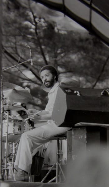 Billy Cobham at Symphony Hall. The guitarist is John Scofield, the keyboard player is George Duke, and the bass player is Alphonso Johnson.
